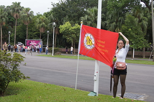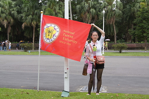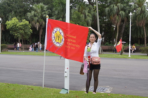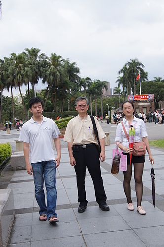 在台大校園幫長女和小鄭拍穿著碩士服的畢業紀念照,於台大校門口告一段落。