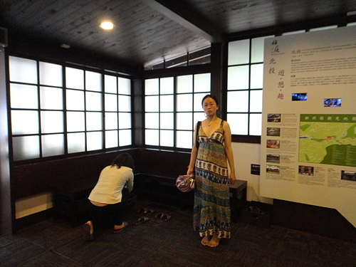 自北投兒童樂園另一端下坡來,正好面對北投公園露天溫泉和梅庭。