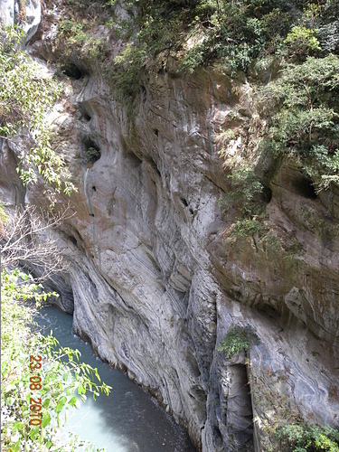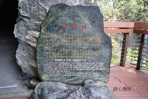 燕子口中間隔著一條立霧溪和中橫公路相對,兩岸的大理石峭壁上分布著許許多多形狀不 同的洞穴。