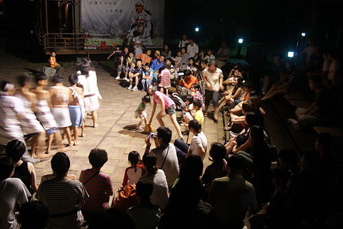 晚會表演廣場恰好在我們家庭房B03的旁邊。