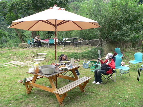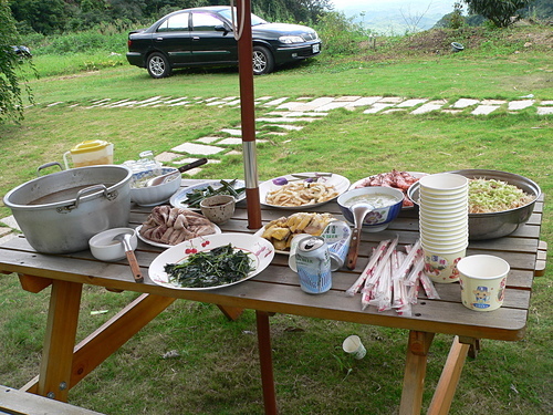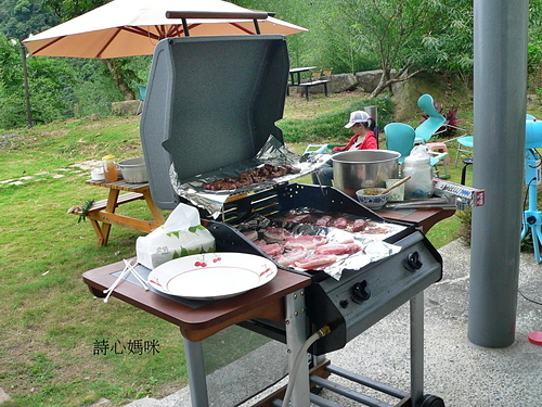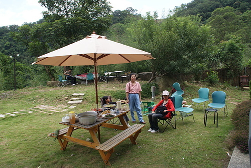 然後走寬廣的柏油路步道,至山腰的一幢山中別墅,來場戶外烤肉派對外加客家料理。