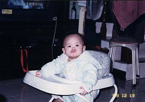 87.12.13 七個月 坐在學步車內 好可愛的嘟嘴巴!