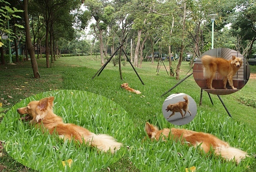 台灣的8月氣候仍然很熱,Yuni喜歡到小公園的草坪翻滾。