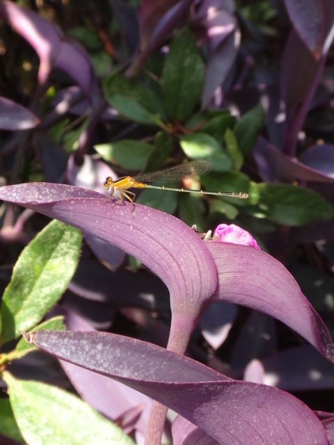 青紋細蟌(未熟、雌蟲) , 合胸橙色,背方黑色,腹部第1-2節橙褐色