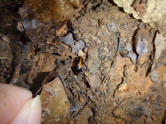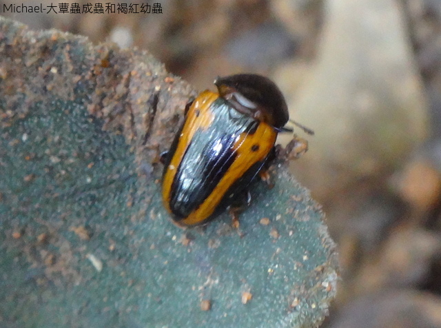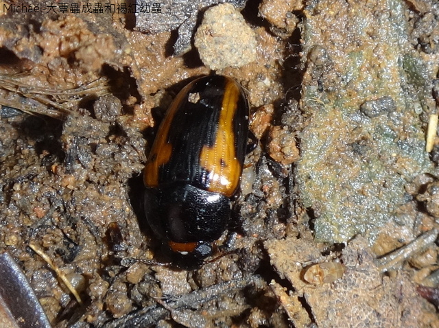 藏匿於蟻巢傘菇菌內的大蕈蟲--黑+橘黃色昆蟲~?