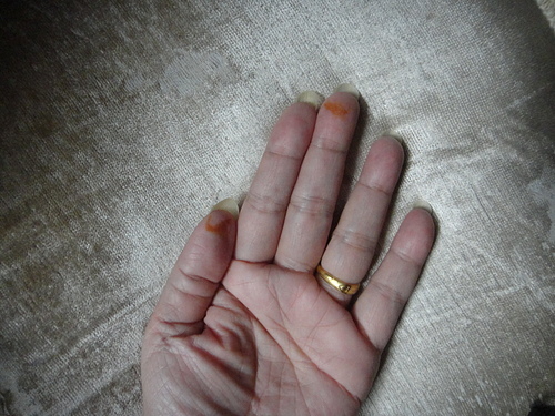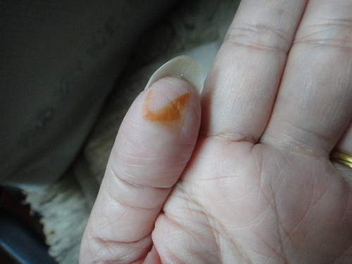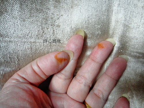 黃斑椿象終齡若蟲的 臭液痕跡, 二天都洗不乾淨~