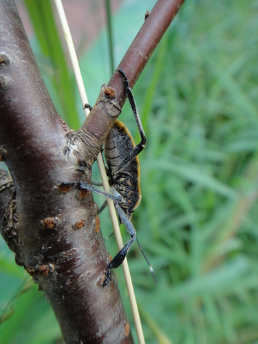 黃斑椿象終齡若蟲的臭液並不臭,有點像割完草的青草味;可是手指卻殘留下似消毒水的棕黃色痕跡,用水沖洗不掉。