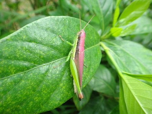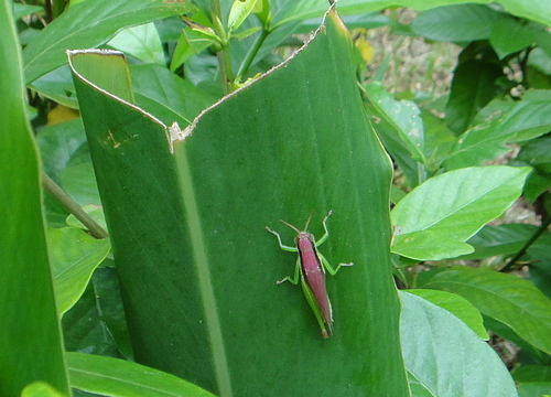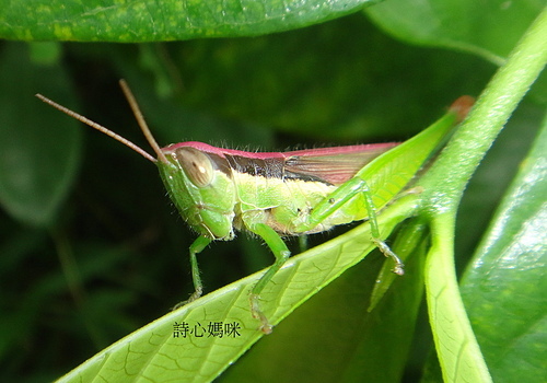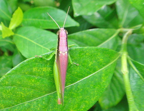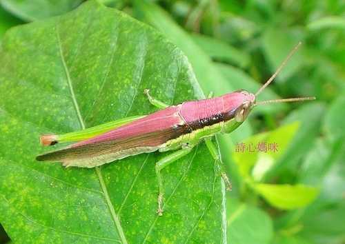一隻令人驚艷、紫紅色的 台灣稻蝗!