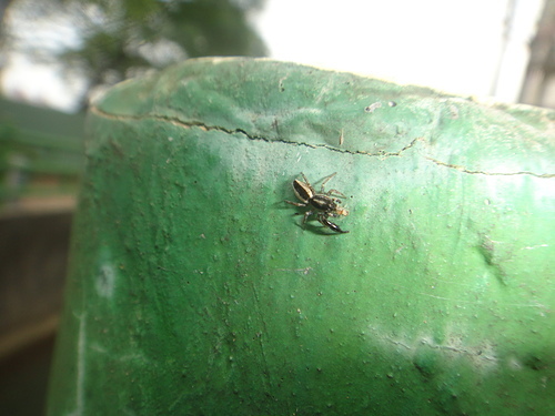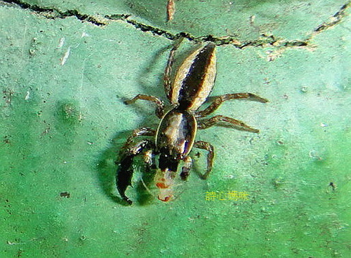 斷左前足的 菲島擬伊蛛(雄)捕食嚙蟲