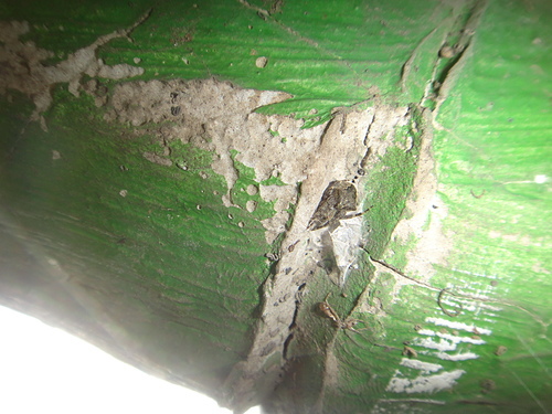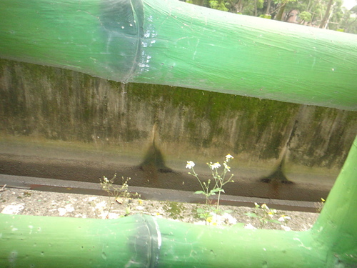 最後在水圳欄杆底端的縫隙,看見他在休息。