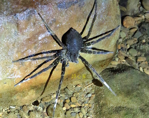 在溪邊岩石捕食的寬腹黑蜘蛛 - 捕魚蛛?