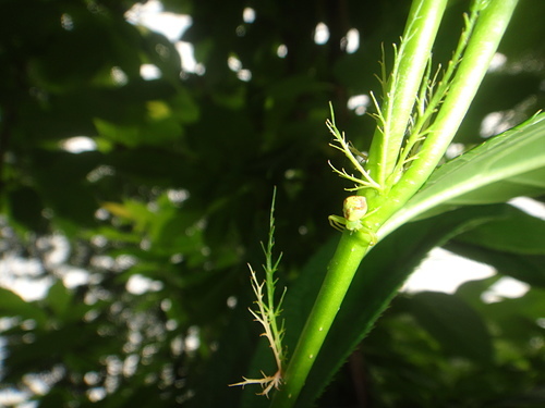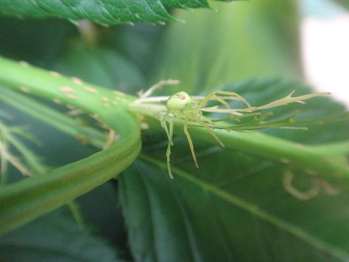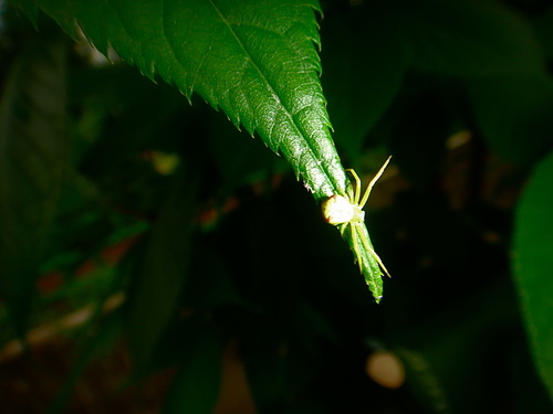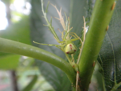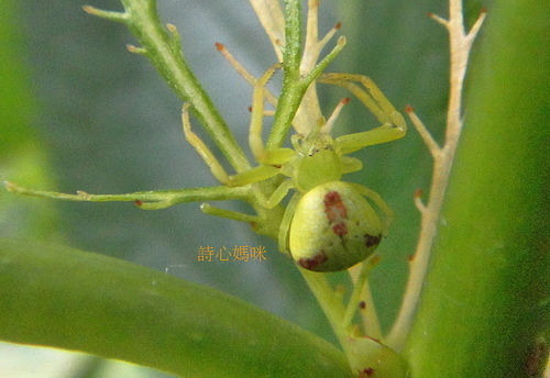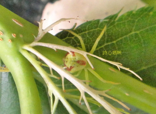 喜歡在山櫻花枝幹間玩躲貓貓的三突花蛛 (雌)