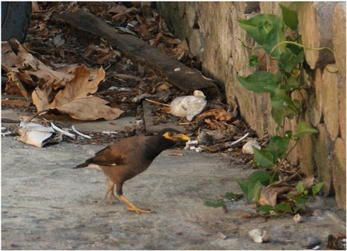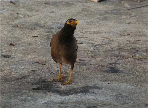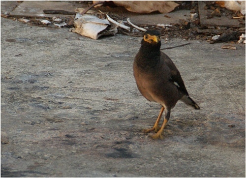 乍看本以為是白尾八哥,再查看鳥圖鑑,才知眼臉黃色是不同之處。
