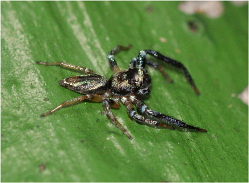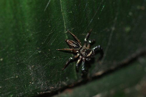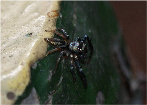 細齒方胸蛛群原棲身之處為金露花叢,但經市公所定期剪修常遭受騷擾後,便有些移民到對面水圳的欄杆棲息。