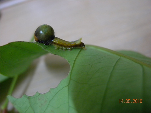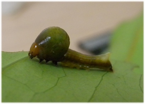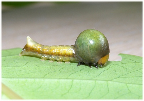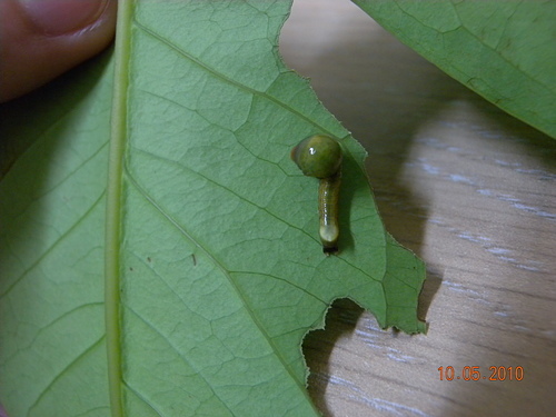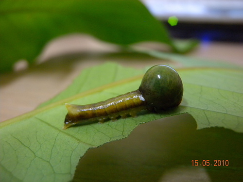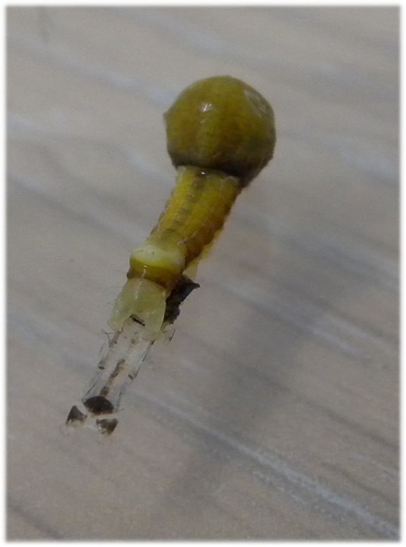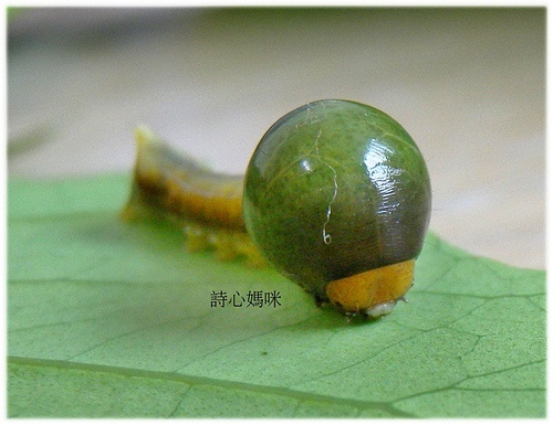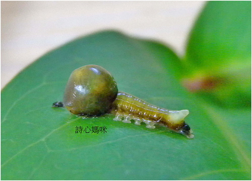 剛蛻完皮的蓮霧赭夜蛾四齡寶寶