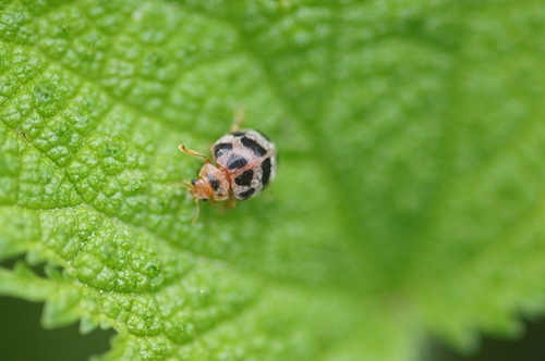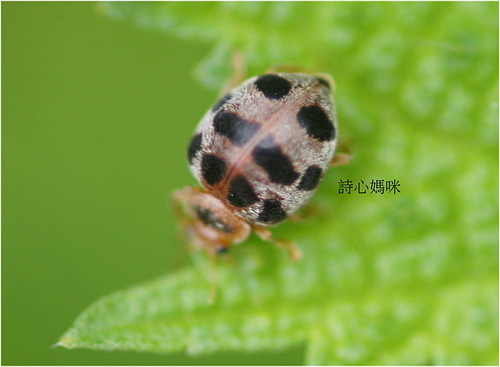 咬人貓黑斑瓢蟲外觀跟杜虹十星瓢蟲及橫斑食植瓢蟲很像,但寄主咬人貓葉上的,一定是咬人貓黑斑瓢蟲。