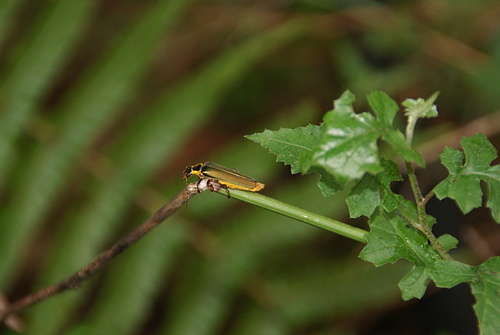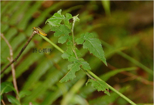 在裂葉蔓黃菀葉片上,發現一隻正在啃食的大斑菊虎。