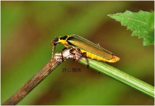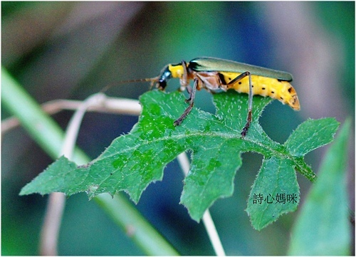 前胸背板黃色,上有一枚三角柱狀似山峰的大黑斑