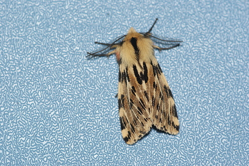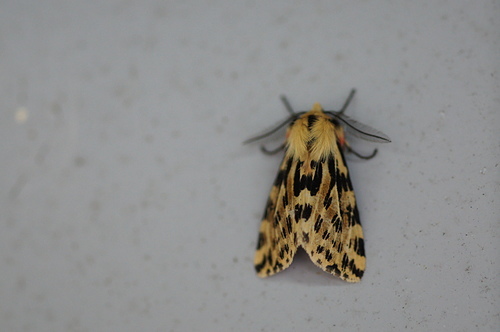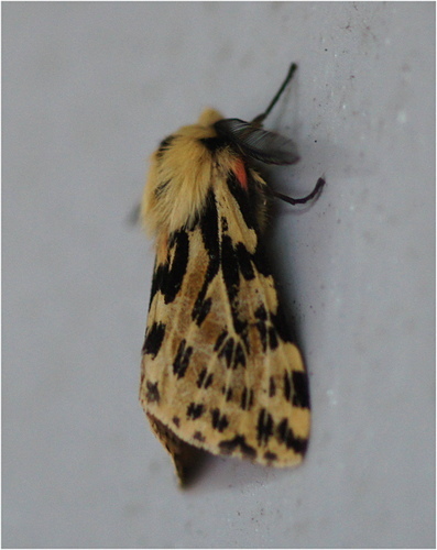 碎斑黃污燈蛾(稀) 五隻,二種不同斑紋和顏色,雌蛾和雄蛾之差異?