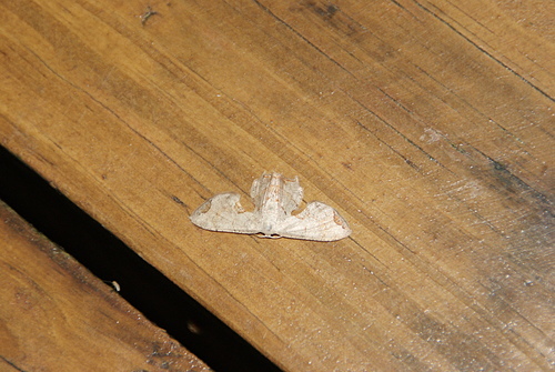 本種的前翅為黃褐色底,外緣與後緣各有一半圓黑斑,翅中央有兩條窄黑帶,翅上佈滿黑色細紋;後翅亦為黃褐色底,中央有兩條窄黑帶,翅上佈滿黑色細紋。