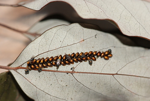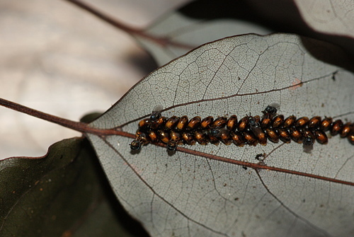 寄生於黑竹緣椿象卵的粗腿小蜂,羽化第二天。