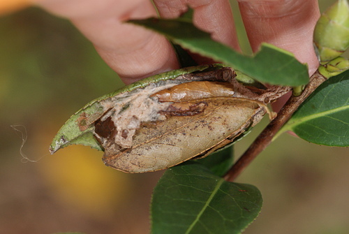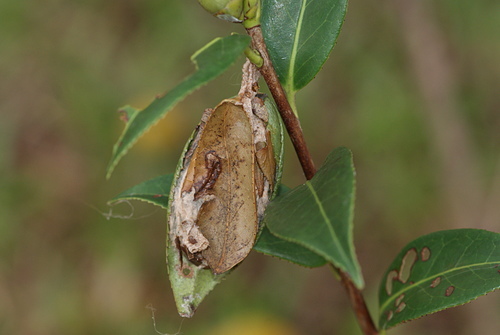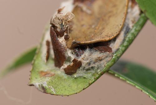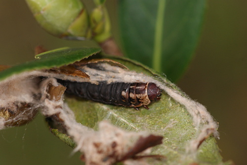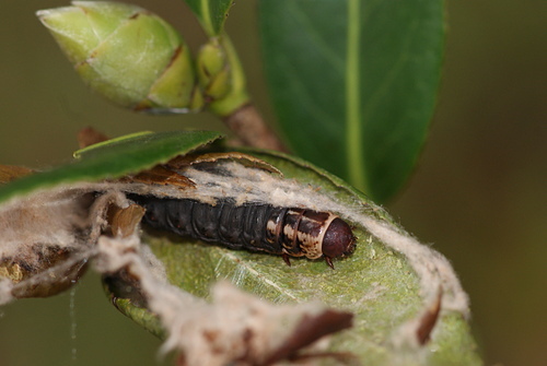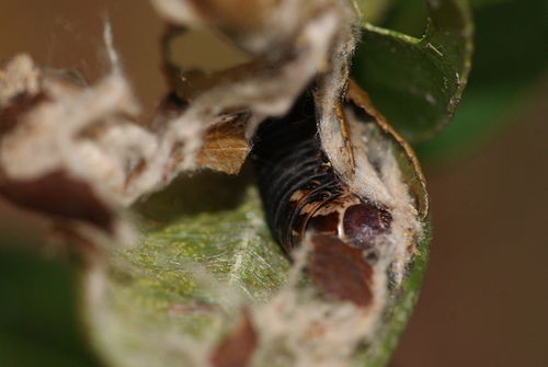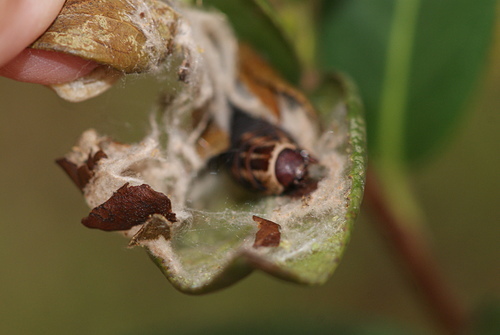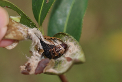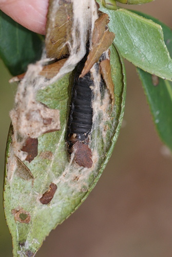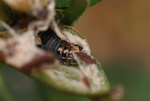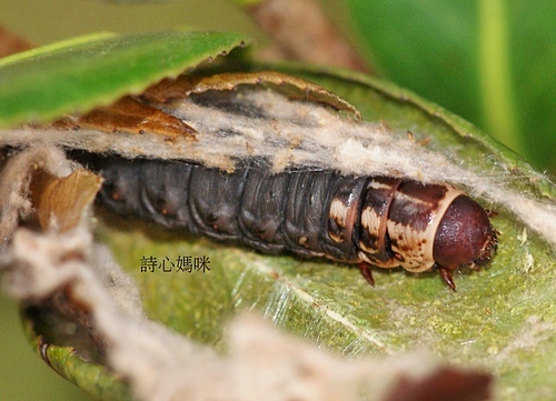 大避債蛾的幼蟲及蟲巢 (以樹葉築巢)