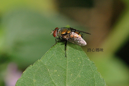 大頭麗蠅 100.9.6 攝於 社區小公園 金露花