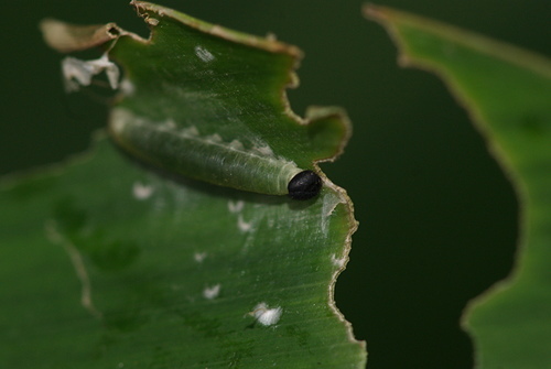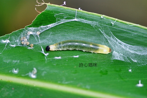 薑弄蝶(大白紋弄蝶)寶寶 100.7.2 攝於 台大森林系所旁 月桃葉片