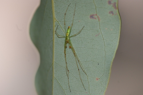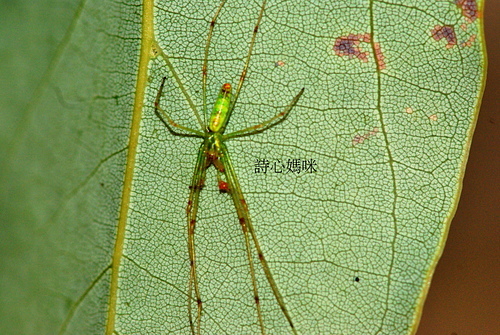 綠鱗長腳蛛(雌) 97.8.2 攝於 水圳散步道 - 金露花葉片