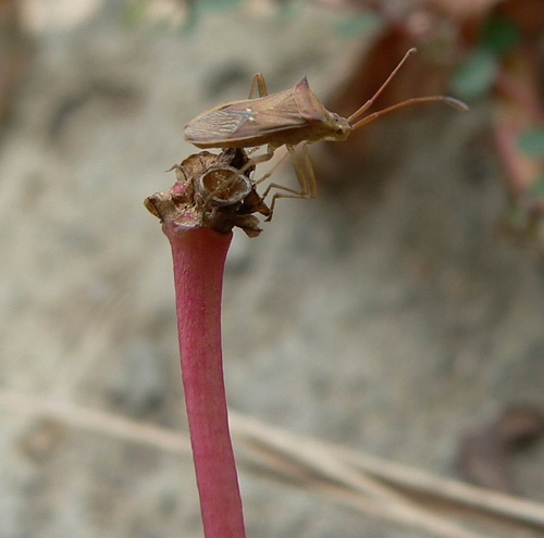 稻棘緣椿象 96.7.9 攝於 大埤塘道路旁 馬齒莧紅莖上