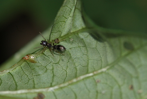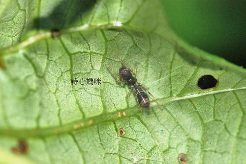 六腳的黑色蟻蛛(雌) 100.9.11 攝於 社區小公園 金露花