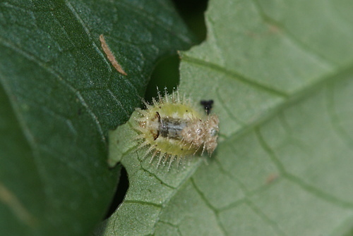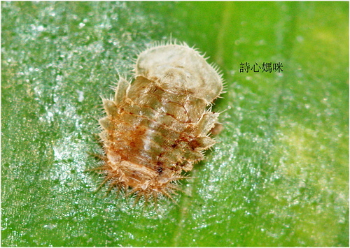 龜金花蟲乳黃色幼蟲和卵鞘? 100.8.13 攝於 社區公園入口 槭葉牽牛花