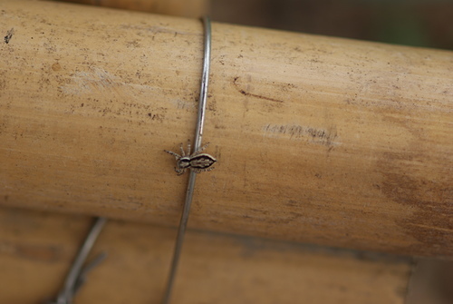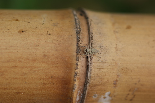 雙帶扁蠅虎雌若蛛補蠅 和雄蛛 100.9.13 攝於 社區小公園竹籬笆
