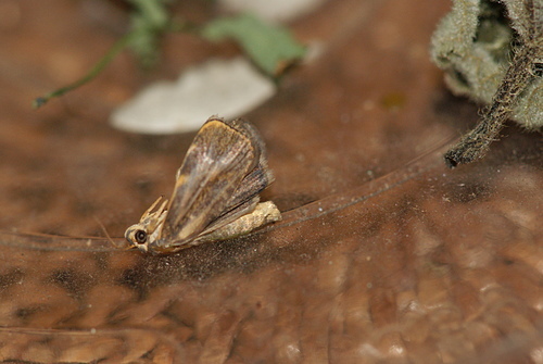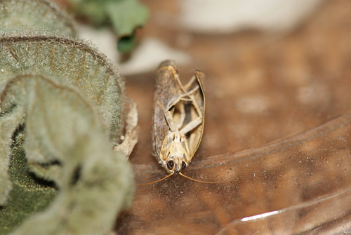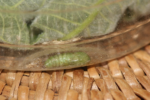 100.9.13一隻不知如何跑到我眼鏡上的奇蛾科綠幼蟲,次日就化成繭蛹,二天後便羽化成蟲,變態成長速度真快!