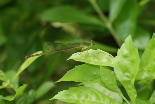 紅腹細蟌(雄與雌) 100.8.24 攝於 社區小公園 金露花叢