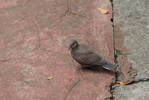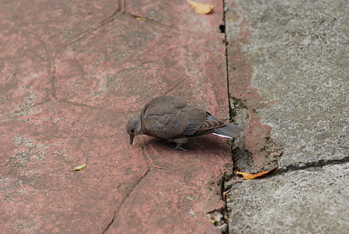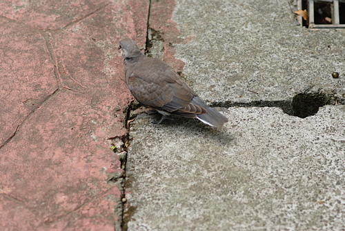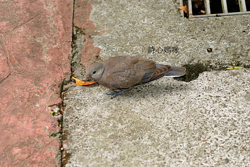 沒料到居然是野鳥類的紅鳩亞成鳥,為何如此溫馴不怕人類呢?