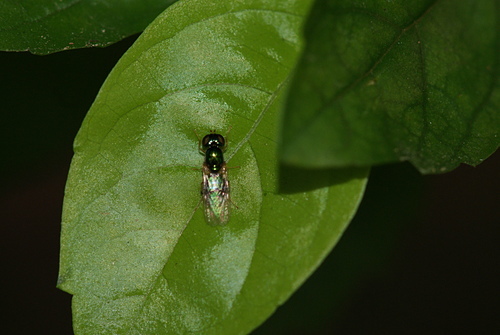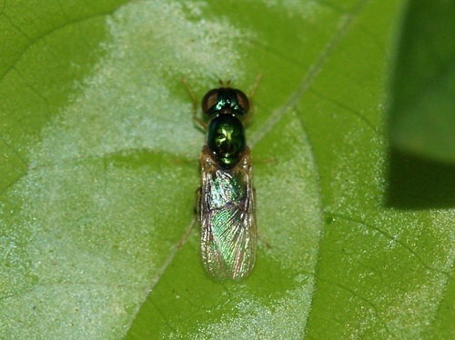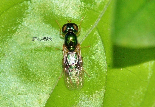 彩眼水虻 (綠胸) 100.9.2 攝於 社區小公園 金露花
