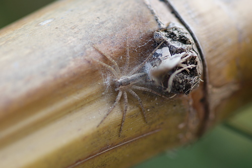 趴趴蛛 - 跑蛛 雌 100.8.25 攝於 社區小公園 籬笆竹竿