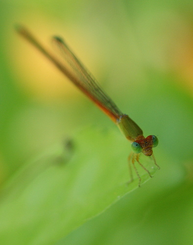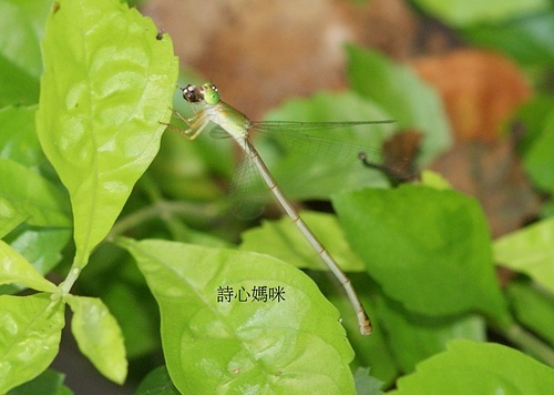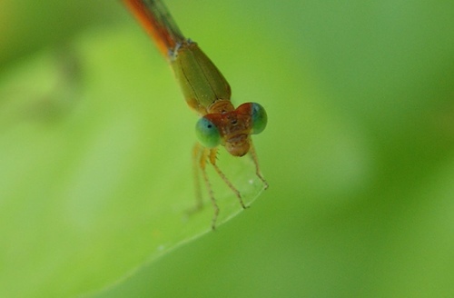 紅腹細蟌,兩眼分離,此為豆娘類群的特徵之一。