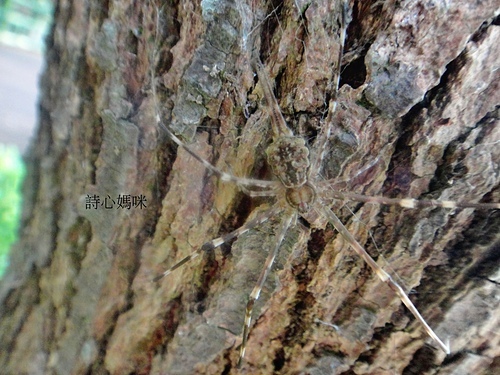 這隻條紋長疣蛛和樟樹樹幹的顏色簡直一模樣,具有保護色作用。