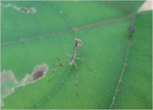 寬腹螳螂二齡若蟲 100.8.18 攝於 社區小公園 構樹葉片