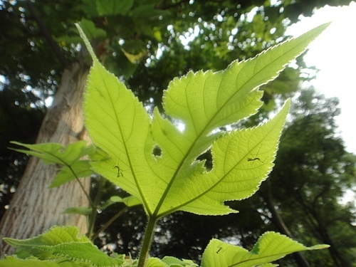 今天發現構樹葉片上,冒出一大堆螳螂的若蟲~!