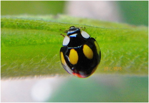 黑得發亮的鞘翅上有六枚黃色橢圓形斑點,就是這種配色讓我著迷不已~。