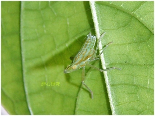 尖嘴黃眼體背綠色帶褐紋的葉蟬若蟲