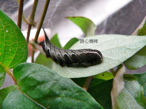 便拿相機拍攝記錄,趕緊下載,到網路上對照,認為應是“凹緣天蛾幼蟲”。