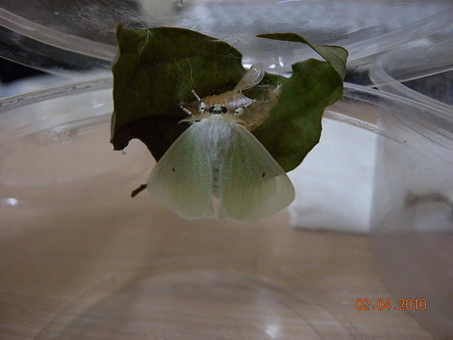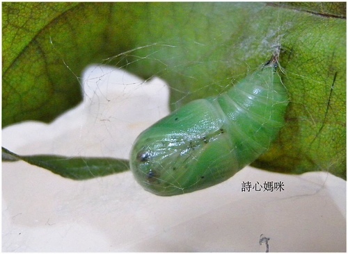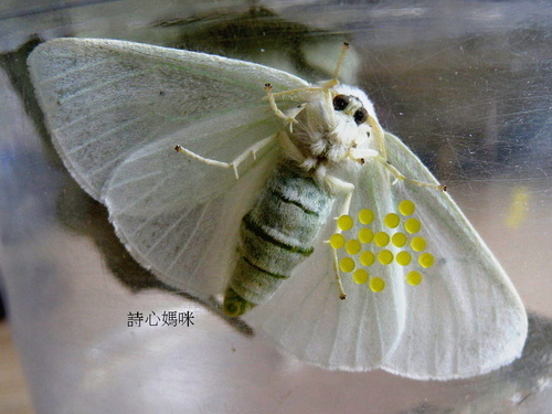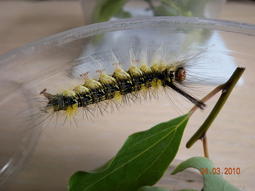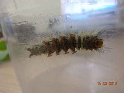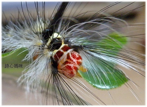 雌小點白毒蛾終齡幼蟲弓身蛻皮中