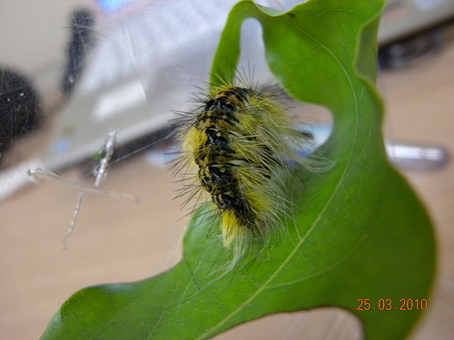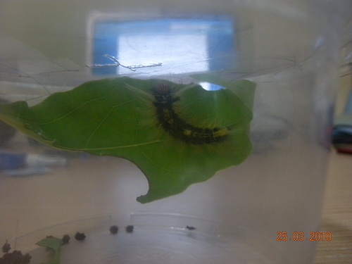 99.3.11 戶外樟樹葉片上的幼蟲與蒼蠅