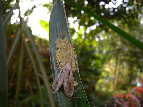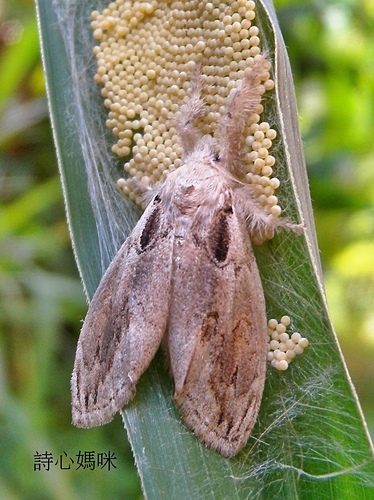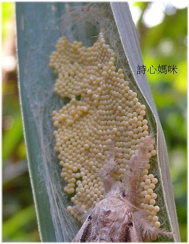 褐斑毒蛾雌蟲簡直就是多產媽媽,密密麻麻的黃色卵,真是嚇人啊!