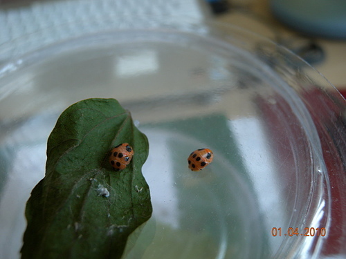 長女於3.28在臺灣朴樹發現二隻瓢蟲幼蟲,將牠們帶回宿舍飼養,這是母錨紋瓢蟲由幼蟲至蛹到羽化過程。