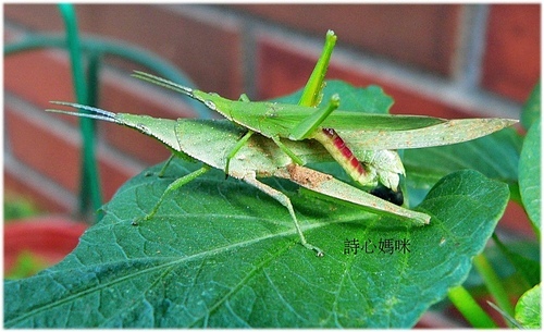 紅后負蝗交尾 (上- 雄蟲 / 下- 雌蟲)